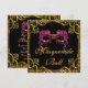 Vacker lila och gul maskerad födelsedagsinbjudan.