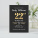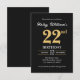 Svart Guld Minimalistisk Modern Enkel 22-årsdag Inbjudningar