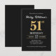 Svart Guld Minimalistisk Modern Enkel 51-årsdag Inbjudningar