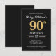 Svart Guld Minimalistisk Modern Enkel 90-årsdag Inbjudningar
