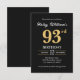 Svart Guld Minimalistisk Modern Enkel 93-årsdag Inbjudningar