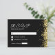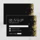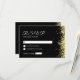 Modern Svart Guld Bröllops-RSVP-kort - med glittrande droppar på svart bakgrund med vit text.