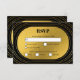 En vacker kombination av svart och falskt guld med en touch av vitt. De minimalistiska ovala båglinjerna skapar en modern geometrisk sofistikerad samtida stil. Elegant bröllops-RSVP-svarskortdesign med moderna element. Den enkla typografiska layouten ger den en distinkt look. Matchande bröllopspappersvaror och andra bröllopsinbjudningsformat finns också tillgängliga.
