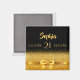 Elegant, klassisk, glamorös och feminin. En färgad i guld med gyllene glitter och gnistra, lite av lek och lyx för en 21:a födelsedag. Svart bakgrund. Mallar för namn, 21 år, födelsedatum och födelsedatum. Perfekt som en tjänst eller som ett sätt att spara datumpåminnelsen för dina gäster.