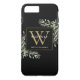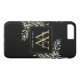 Elegant vattenfärg grönska blad monogram namn telefonfodral med en guldmonogram initial på en chic svart bakgrund. Designad av Thisisnotme©
