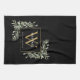 Elegant vattenfärgsgrej löv namn kökshandduk med ett guld-monogram med ditt namn angivet i en modern vit text på chicens svarta bakgrund. Designad av Thisisnotme©
