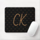 Anpassa och lägg till ditt monogram brev, initialer. Monogrammet initialer som mönster i bakgrunden. En svart bakgrund i klassisk chic färg. Golden färgad brev.