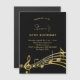 Ett trendig, ett modernt 50:e (eller någon ålder) födelsedagsfest inbjudan-magnetkort för både manar och kvinnor. En klassisk svart bakgrund och musik noter, guldfärgad färgad brev. Anpassa och lägg till information om party.