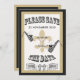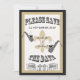 Dessa roliga men ändå stilrena "Save the Date"-bröllopsannonser ser till att dina vänner och familj är där på din speciella dag. Kortens framsida visar "SAVE THE DATE" i en rolig retrofont i en svart och guld design med en Fleur de Lis-symbol, skisser av typisk New Orleans-arkitektur och musikaliska jazzsaxofoner. Visas här i svart och guld. Anpassa med din festinformation med hjälp av mallen. Klicka på Anpassa för att göra ändringar i typsnitt och textplacering.