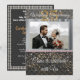 Svart och guld inbjudan med silver silke introducerar fotografiet av paret.