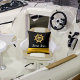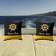 En klassisk svart bakgrund. Dekorterad med faux guld-ratten och 4 kapten rand. Anpassa och lägg till båten namn.