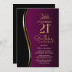 Bjud in dina vänner och nära och kära med denna moderna svarta, guld och rosa överraskningsinbjudan till 21-årsfest. Det anpassningsbara textområdet i denna inbjudsmall gör att du enkelt kan inkludera alla nödvändiga detaljer för din speciella födelsedagsfirande, inklusive datum, tid, plats och RSVP-information. En mängd olika papperssorter och hörnstilar finns tillgängliga för dina unika inbjudningar, tillsammans med möjligheten att ladda ner om du föredrar ett digitalt format.