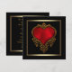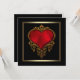 Rik röd satin hjärta med utsirat guldbeslag elegant dramatisk formell svart och guld röd hjärta bröllopsinbjudan.