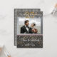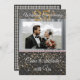 Svart och guld inbjudan med silver silke introducerar fotografiet av paret.