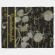 Svart, guld, silver, tack, blommor, blommigt. fleecefilt