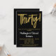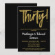 En elegant, enkel men slående svart och guld inbjudan till 30-års bröllopsdag. Glamourös skrifttext högst upp och guldbokstäver nedan med namnet i iögonfallande vitt