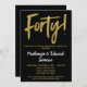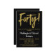 En elegant, enkel men slående svart och guld inbjudan till 40-års bröllopsjubileum. Glamouröst skripttext högst upp och guldbokstäver nedan med namnet i iögonfallande vitt