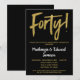 En elegant, enkel men slående svart och guld inbjudan till 40-års bröllopsdag. Glamouröst skripttext högst upp och gul text nedan med namnet i iögonfallande vitt