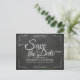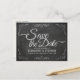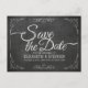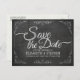 Bröllop spara datum vykortsmallar - Elegant Spara datumskript och Vintage vit Blommigt Ram med Grunge Black Chalkboard Background. En Perfekt för din stora dag. Alla textstorlekar i stil, färg, kan ändras för att passa dina behov!