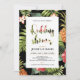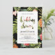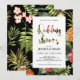 Denna unika tropiska bröllopsfestinbjudan har ett vackert tropiskt blommönster med en stilren typografi.