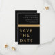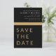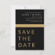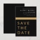 Bröllop Elegant Black och Guld Spara datumkort. Spara datumkorten innehåller en modern handskriven kursiv skripttypografi som är elegant, enkel och modern till använda efter att du har minimalistisk enkel bröllopsdag firande.