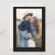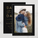 Svarta och Guld Bröllop Spara Datum-kort som har ett foto på framsidan. Spara Datum-korten innehåller en modern handskriven kursiv typsnitts typografi som är elegant, enkel och modern att använda efter din minimalistiska enkla bröllopsdagfirande.