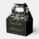 Elegant bröllop-förmånslåda med söt ljus, chic guld namnteckning skript namn och speciellt datum på svart bakgrund. Du kan anpassa dig med ditt eget tack till ditt meddelande på motsatt sida. Ett perfekt sätt att tacka gästerna! Designad av Thisisnotme©