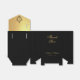 En elegant svart och guld bröllagspresentask. Flappen är falskt guld och den har en svart vapensköld med bröllopsmonogram i, från de två initialerna av bruden och brudgummen.