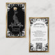Förhöj din tatueringsstudio eller artistvarumärke med vårt gotiska vintage-tatueringsföretagskort, med en handritad utsmyckad rullningsram och falska guldförgyllningar för en lyxig, mystisk look. Framsidan visar en skissliknande skelett-hand som håller en enda ros, vilket skapar en djärv gotisk fokuspunkt som kan anpassas med din studiets namn. Baksidan visar raffinerade utsmyckningar, en matchande falsk guldbård och dina kontaktuppgifter med en QR-kod för enkla bokningar. Den dramatiska svarta, vita och gyllene färgpaletten skapar en sofistikerad gotisk estetik, perfekt för tatueringsstudior, tatueringsartister och kroppskonstproffs som söker en unik, mystisk och vintage-inspirerad presentation. Design och illustration