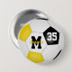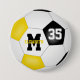 Den här fotbollsknappen i team färg för flickor (eller pojkar) har en traditionell fotboll i stil med svarta, guld och vita paneler - anpassa spelarens namn, monogram och jersey-nummer - efter katz_d_zynes | Se fler flickor i fotbolls-gåvor >> https://www.zazzle.com/store/katz_d_zynes/products?cg=196901312156083158 | Skåpgåvor >>> https://www.zazzle.com/store/katz_d_zynes/products?cg=196471975604901561