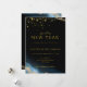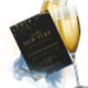 Bjud in din familj och vänner till din glittrande nyårsfest och fira med vår vackra gyllene glänsande inbjudan. Designen har gyllene gnistrande abstrakt vattenfärg svart bakgrund.