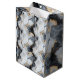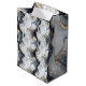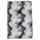 Gör ett djärvt och sofistikerat statement med denna eleganta svarta och gyllene marmorerade medelstora väska. Inspirerad av agats och naturstens tidlösa skönhet, har designen virvlande lager av djup kol, krispigt vitt och mjukt grått, förstärkt med skimrande gyllene ådring för en lyxig, högkontrast effekt. Det flytande abstrakta mönstret frammanar rörelse och djup, som påminner om polerad marmor eller kristallformationer.