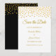 Elegant guld metallisk look konfetti på svart och vit Spara Datum Bröllopsinbjudan. Lyx guld konfetti på svart och vit Spara Datum kort.