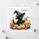 Svart Halloween-kitten med pumpor och häxhatt Julkort