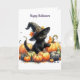 Svart halloweenkittel med pumpor och häxhatt helgkort