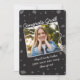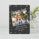 Fira din examen med denna svarta handritade examensmössa konfettidoodle-foto examensinbjudan och -meddelande. Bakgrunden har spridda examensmössor som påminner om konfetti, i kombination med en handritad ram och tofs för en lekfull men ändå polerad look. De illustrerade detaljerna ger personlighet samtidigt som de håller den övergripande stilen modern och tidlös.