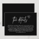 Kortet "Svart handskrivet skript i Bröllop-höljet" blandar modern sofistikering med en personlig, hjärtfull beröring. Med handskript för elegant stil på en fet svart bakgrund tillför det här kortet ett slående men intimt sätt att dina bröllop-detaljer. Perfekt för att förmedla viktig snyggt, t.ex. riktningar, utrymmen eller speciella anteckningar, förbättrar utformningen av bröllop-sviten. Perfekt för par som kärlek contemporary elegans, detta kort lämnar ett minnesvärt intryck samtidigt som du behåller chicen i firande utan problem.