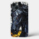 Slående glaskonstverk, främst föreställande huvudet på en svart häst. Hästens drag är gestaltade med intrikat formade bitar av färgat glas, som framhäver dess flödande man och kraftiga käklinje. Användningen av mörka nyanser skapar en slående silhuett, medan subtila variationer i glasstruktur simulerar hästens blanka päls.