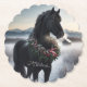 Svart häst i snö med julkrans underlägg papper