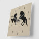 Svart hästar - välj / lägg till text / Färg Fyrkantig Klocka