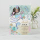 Små flickor älskar magiska saker. Denna magiska under havet havfrue och delfin 5-årsdag inbjudan kommer att glädja gästerna med en fantastisk toning, med havfrue, delfin, sköldpadda och snigelskal i vackra färger av rosa, blågrön och blek lila. En undervattensvärld av magi och mystik.