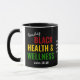 Snyggt Black History Month Health & Hälsa Christian kaffe mugg, med fet röd, gult och grönt typografi. Texten lyder PROMOTING BLACK HEALTH & HÄLSA med en skriptreferens för ett rikligt liv på JOHN 10:10 på framsidan och baksidan, och däremellan är ANPASSADET kristen text baserad på John 10:10 och ett monogram, så att du kan skapa din egen text (t.ex. lägga till din organisationsinformation) och lägga till din(a) ursprungliga text. Detta budskap är en viktig påminnelse, inte bara för Svarta historiens månad och för Svarta Hälsa-veckan utan under hela året, eftersom Jesus kom så att vi alla skulle kunna njuta av hälsa och hälsa. Välj bland ett stort urval av BHM- och Black Maternal Health-produkter och presenter designade av #bereandesign
