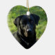 Den hjärtformade julgranprydnaden presenterar den härliga svart Labrador retrieveren.