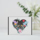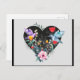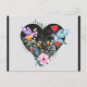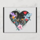 Akvarellillustration med en svart hjärtform fylld med en mängd blommor och två kolibrier. Blommorna inkluderar rosa, röda och gula blomster, kompletterade med grön och grå lövverk. En kolibri är färgad i nyanser av lila, medan den andra är blå. Konstverket är mot en vit bakgrund. Stilen påminner om känsliga akvarellmålningstekniker, med mjuka, diffusa färger och intrikata detaljer.