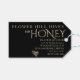 Svart honungsetikett Solrosbeetext Guld Presentetikett