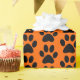Omslagning papper med svart hund/katt/animaliskt tass avtryck på orangens bakgrund. Anpassadet är bakgrunden för Do-it-you (DIY). Välj ett färg med hjälp av HEX färg-koden för att följa med den svarta hund/katt/djur-tass avtryck mönster. Perfekt för alla tillfälle.