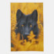 Svart Hund med stenande Guld Ögon Kökshandduk