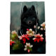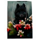 Svartvit blommigt med svart hund, valp med svart hund bland den söta underbara presentsäcken för alla närvarande