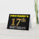 Den här födelsedagskalenderns hälsningskort innehåller ett meddelande som "FIRSTNAME's 17:e BIRTHDAY!", där "17:e" har ett utseende som liknar guld och liknar färg. Mottagarens namn på framsidan kan anpassas, och bakgrunden är svart på färgad. Det innehåller också ett hälsning-meddelande från anpassadets födelsedag på insidan. Ett sådant här födelsedagshälsningskort kan kanske ges till någon i firande på sjuttonårsdagen. [~Z0000183]