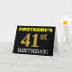Den här födelsedagshälsningskortet har ett meddelande som "FIRSTNAME's 41:a BIRTHDAY!", där "41:a" har ett utseende som liknar guld och liknar färg. Mottagarens namn i framkanten kan vara personlig, och den främre bakgrunden är färgad svart. Det innehåller också ett hälsning-meddelande från anpassadets födelsedag på insidan. Ett sådant här födelsedagshälsningskort kan kanske ges till någon i firande på deras fyrtio första födelsedag. [~Z0000183]